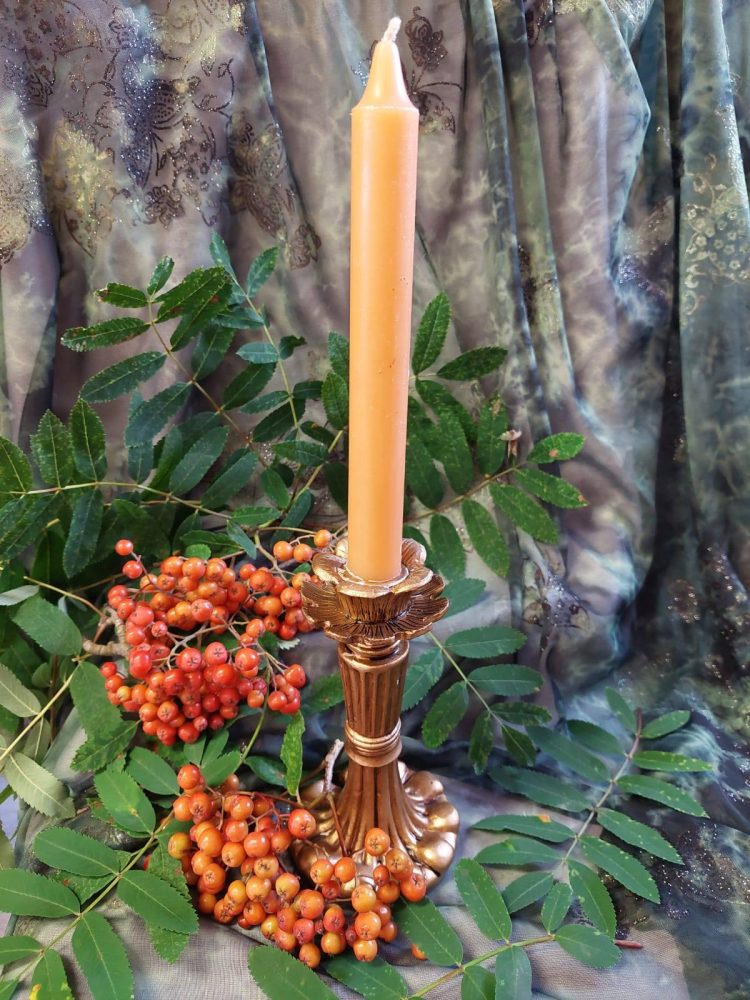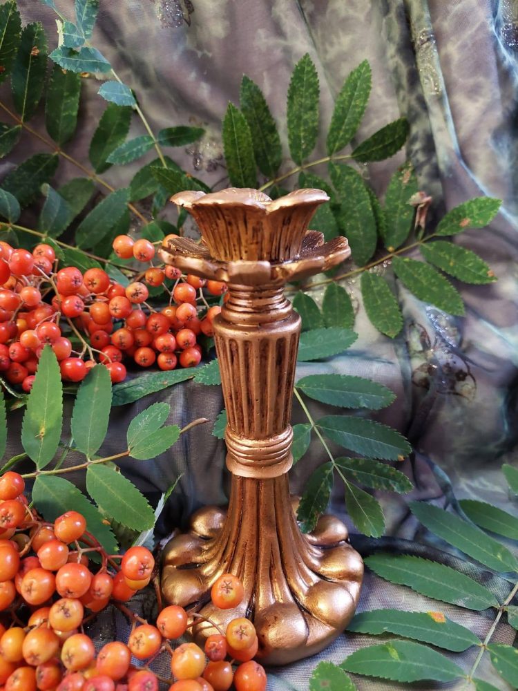 Antiikkinen kynttilänjalka + kruunukynttilä