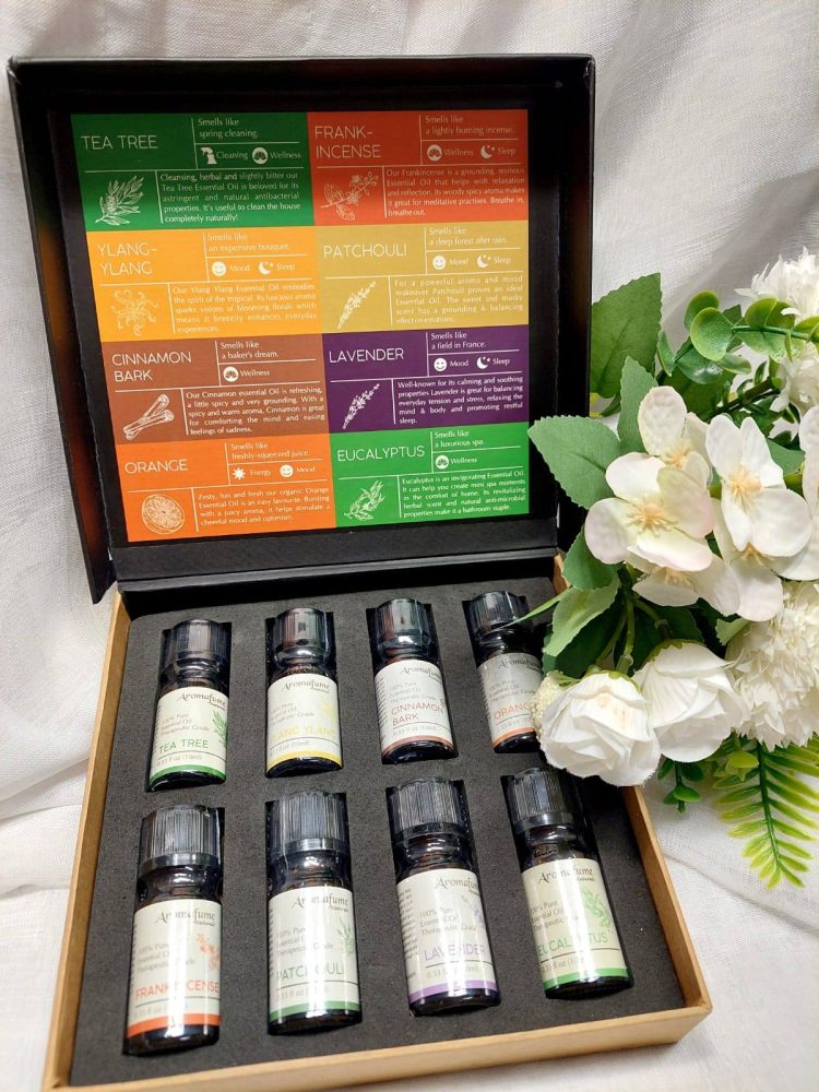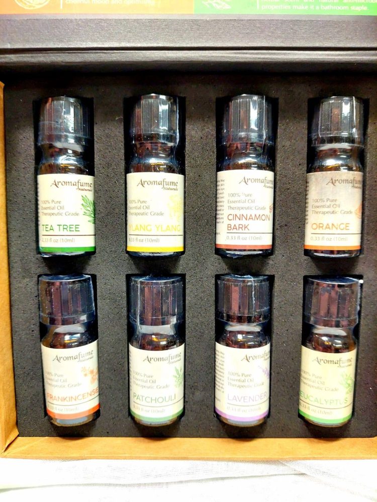 Aromafume Feel Good eteerinen öljysetti, jossa on 8 erilaista eteeristä öljyä, jotka saavat olosi ihanaksi.