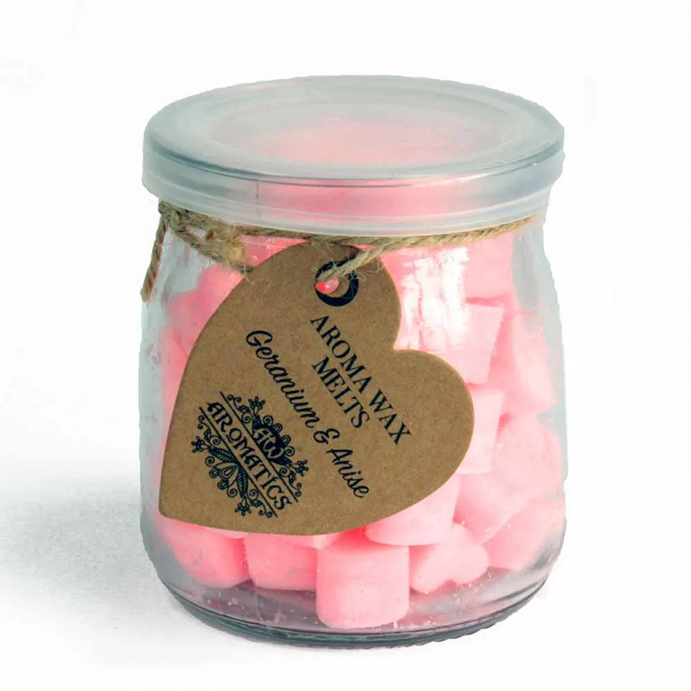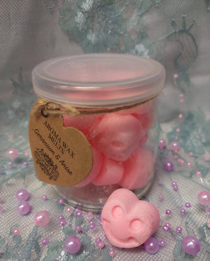 AROMAVAHASYDÄMET, PELARGONIA & ANIS KIVASSA LASIPURKISSA SYDÄMELLÄ