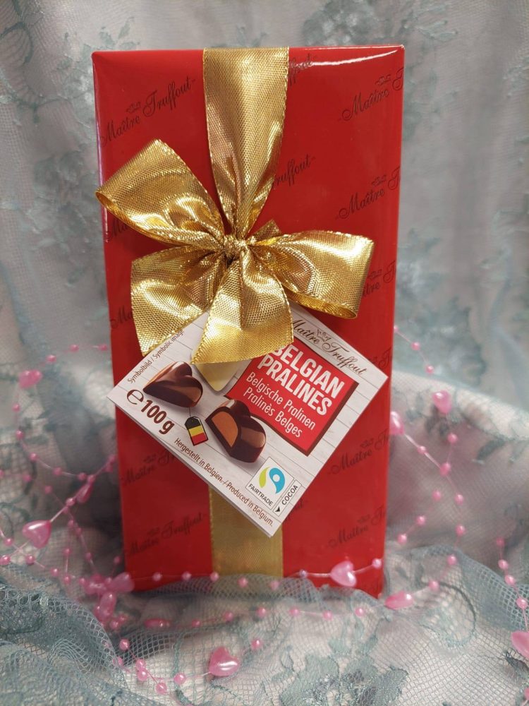 Sisältää ensiluokkaisia belgialaisia suklaasydänkonvehteja