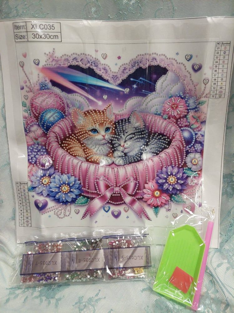 Hellyttävä Timanttihelmityö, Kissojen Onni, 30 x 30 cm