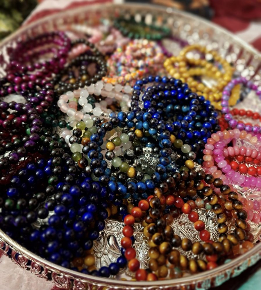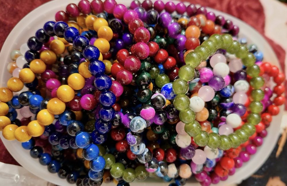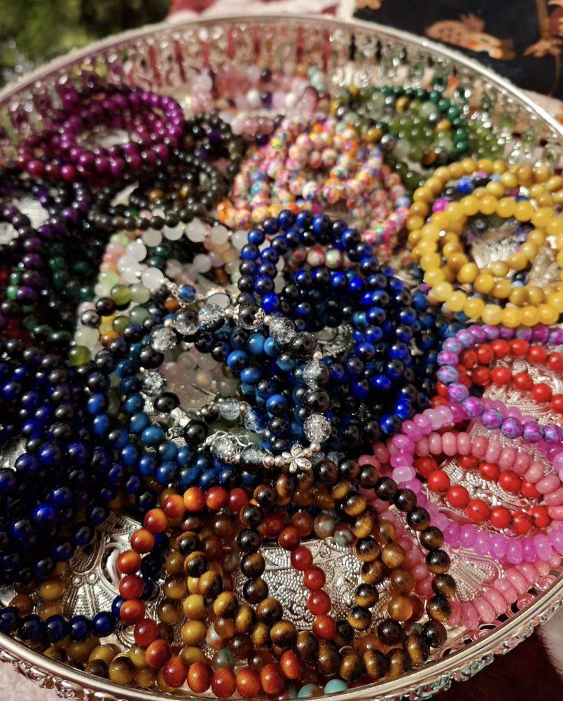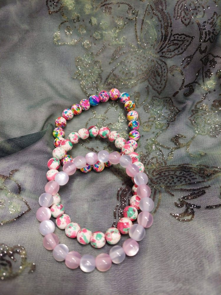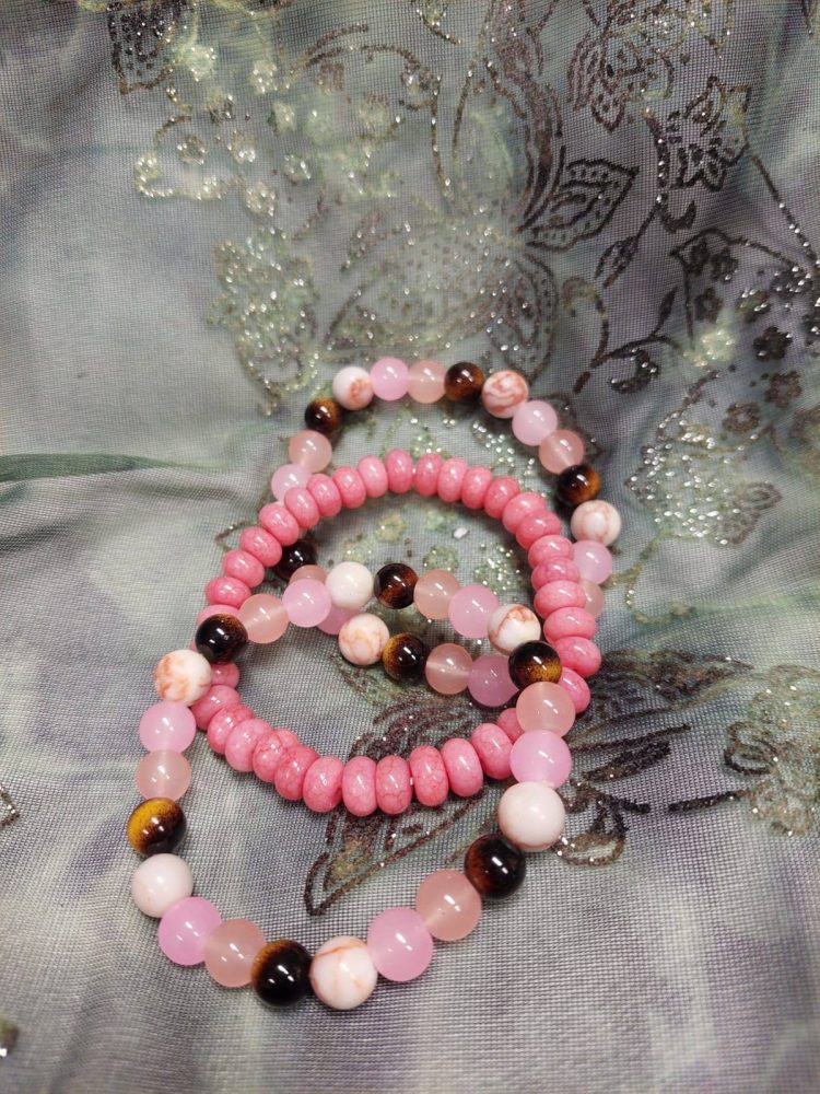 Kivi-rannekorumme sisältävät useamman kiven sekoituksia, pääosissa tiikerinsilmä, ruusukvartsi, ametisti ja hematiitti.