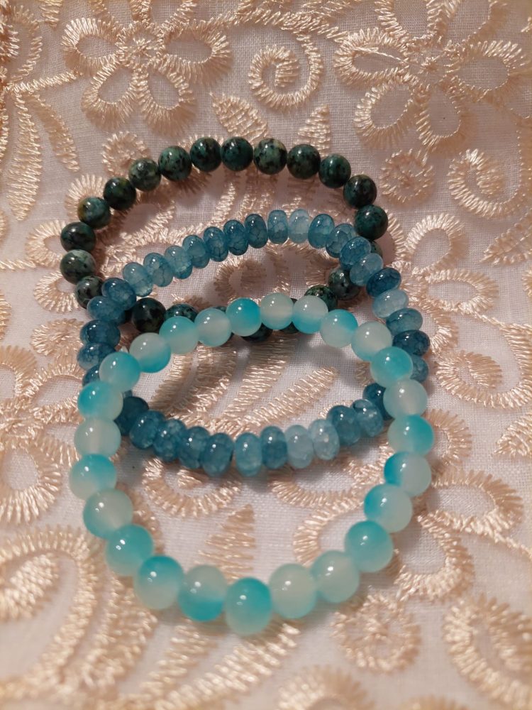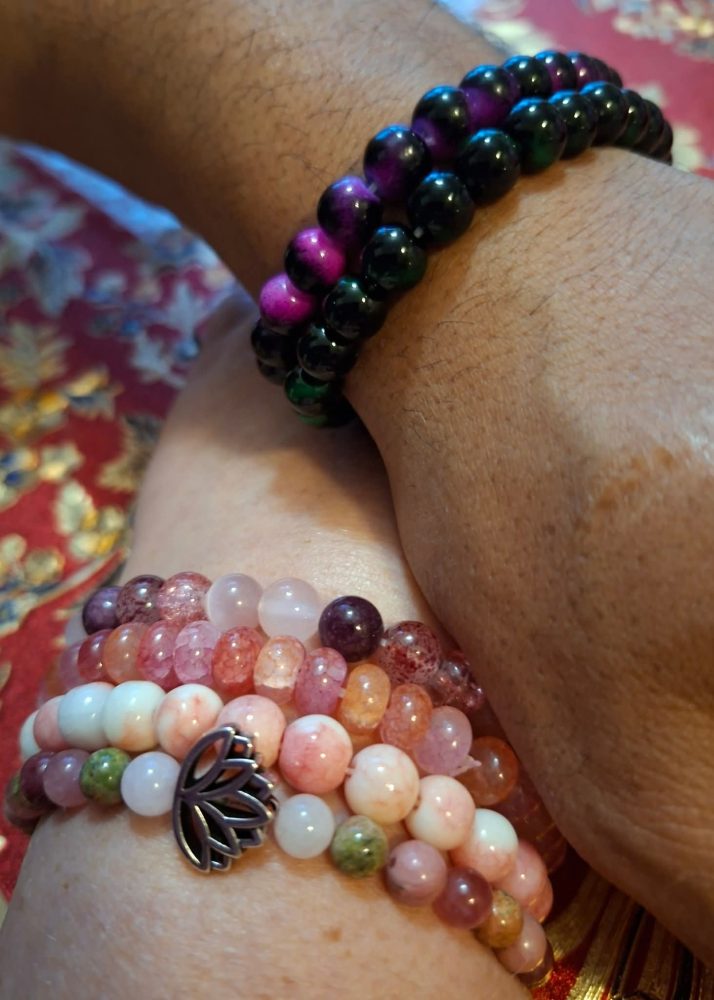 Kivi-rannekorumme sisältävät useamman kiven sekoituksia, pääosissa tiikerinsilmä, ruusukvartsi aventuriini ja hematiitti.