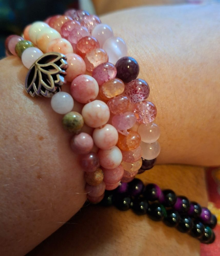 Kivi-rannekorumme sisältävät useamman kiven sekoituksia, pääosissa tiikerinsilmä, ruusukvartsi aventuriini ja hematiitti.