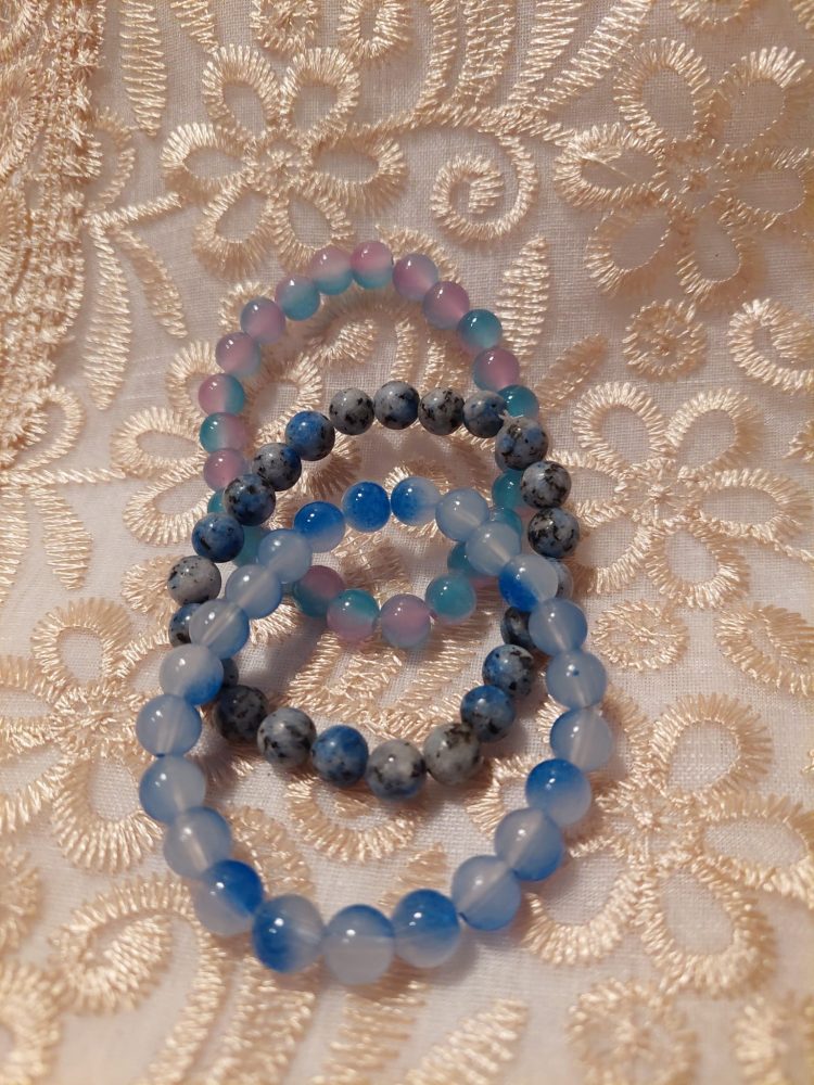 Kivi-rannekorumme sisältävät useamman kiven sekoituksia, pääosissa tiikerinsilmä, ruusukvartsi aventuriini ja hematiitti.