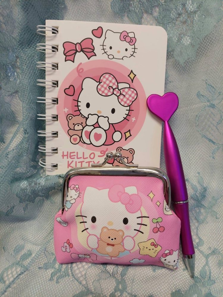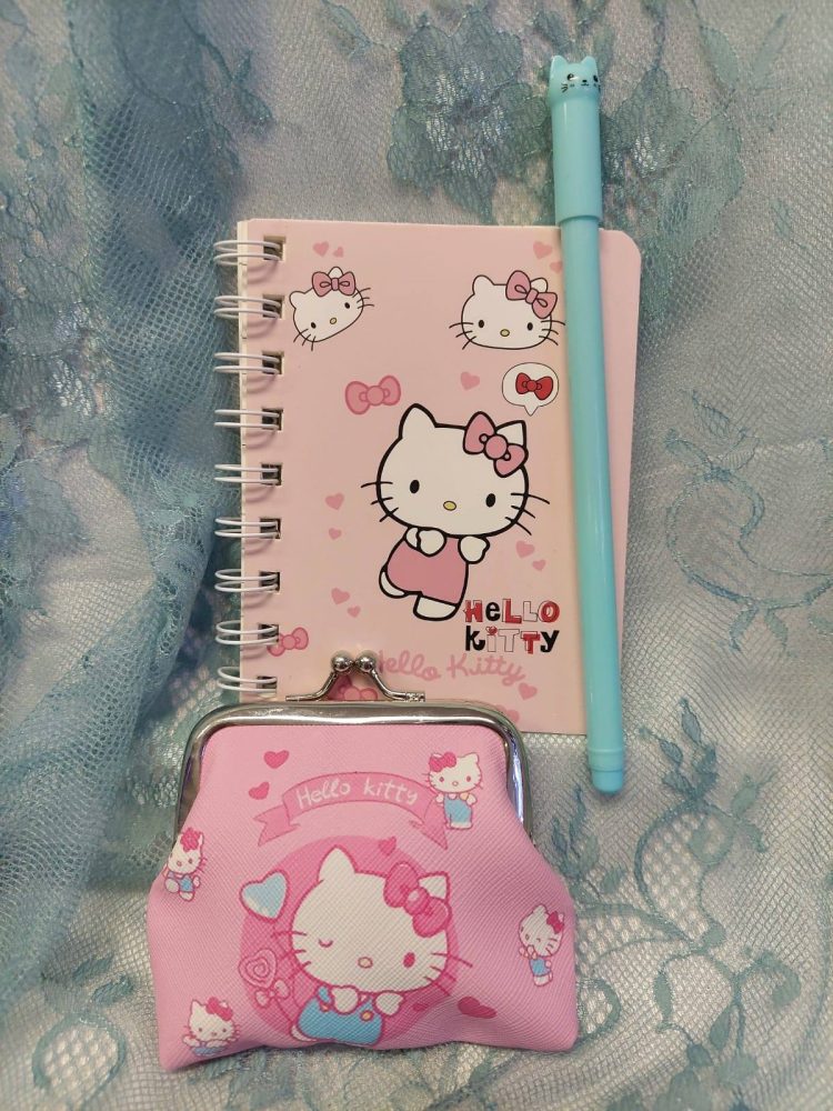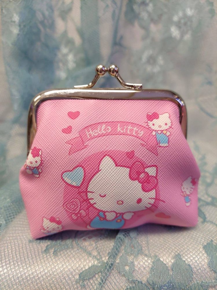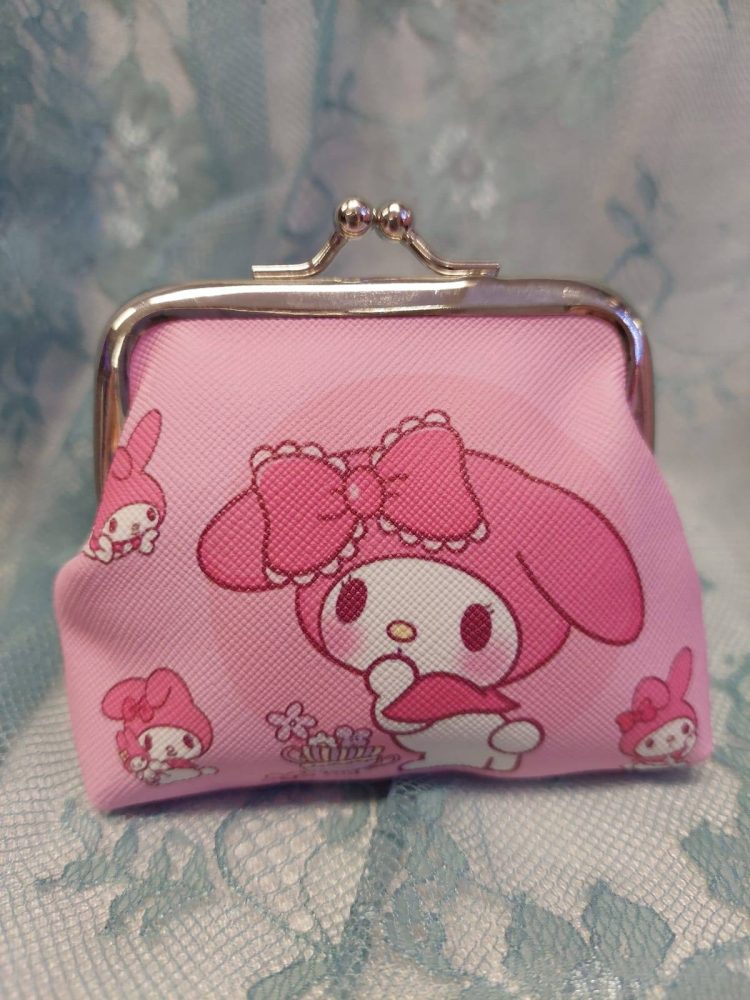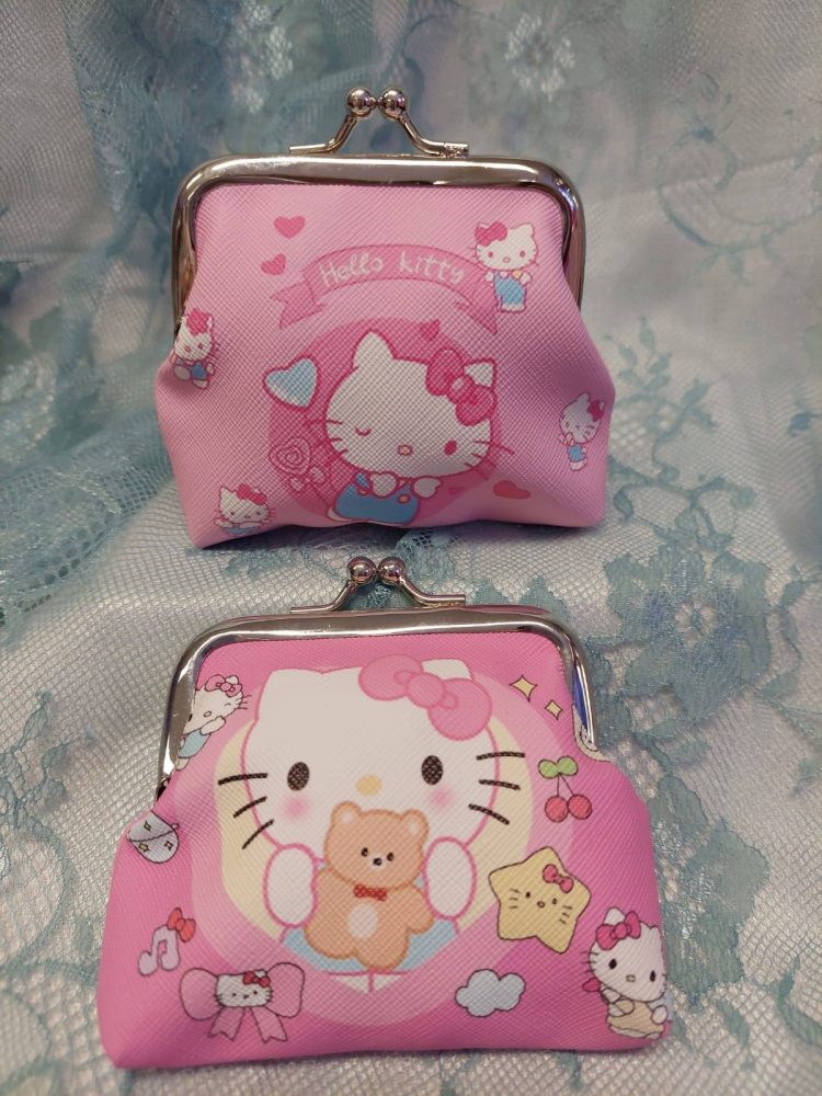 Kaunis sarjakuvahahmoilla koristeltu kolikkokukkaro kaikille tärkeille tavaroille.
