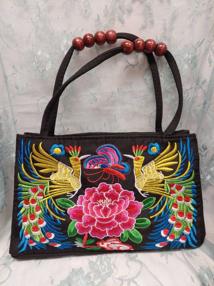ILOINEN KÄSILAUKKU VÄRIKKÄÄLLÄ KIRJONNALLA ja HELMILLÄ