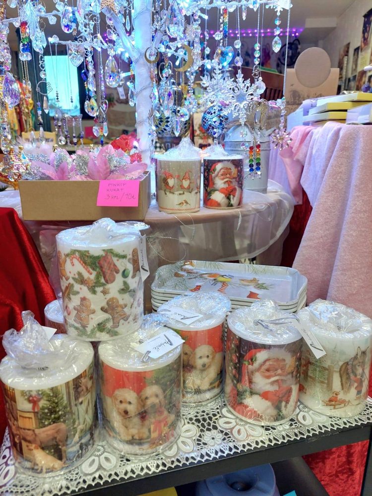 Kynttilän pinnassa on kiva kuva-aihe, sisältä kynttilä on puhtaan valkoinen.