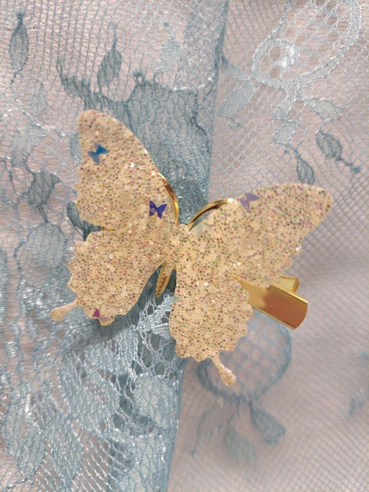 Ihanat kimaltelevat perhoset tukevalla pinnillä pysyvät ohuissakin hiuksissa hyvin paikallaan.