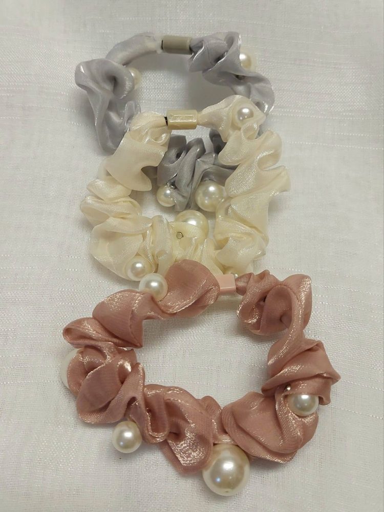 Kauniit satiiniset, kimaltavat Helmidonitsit hiuksiin
