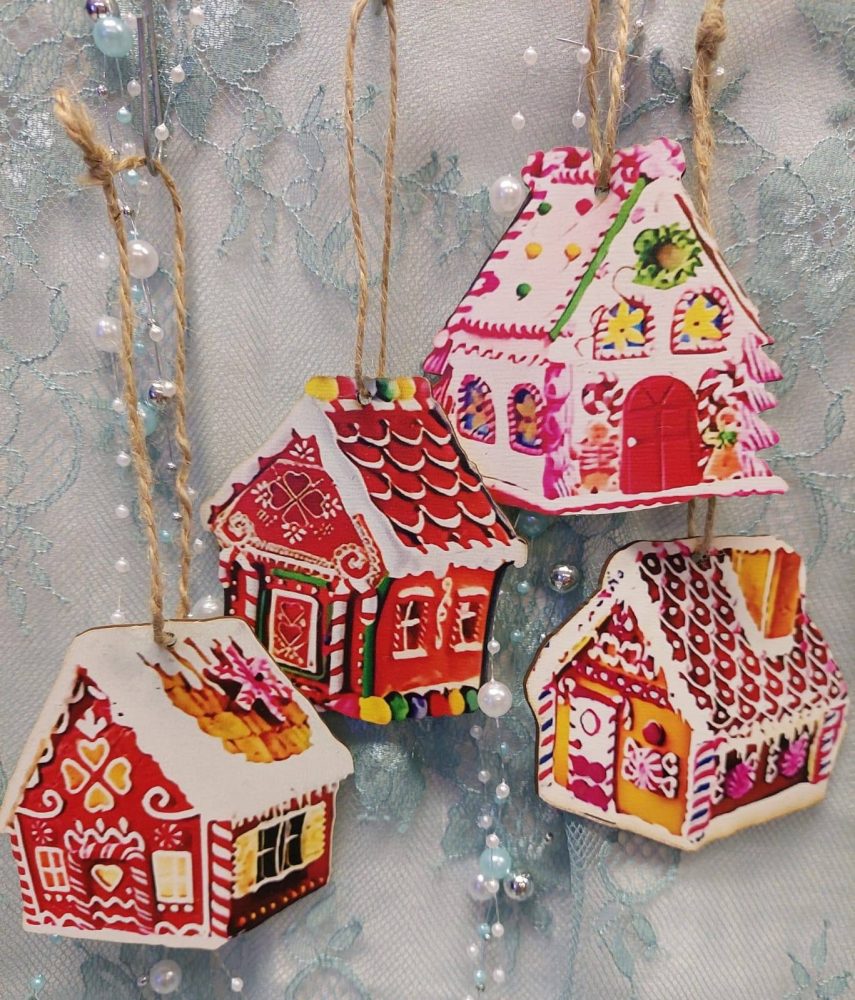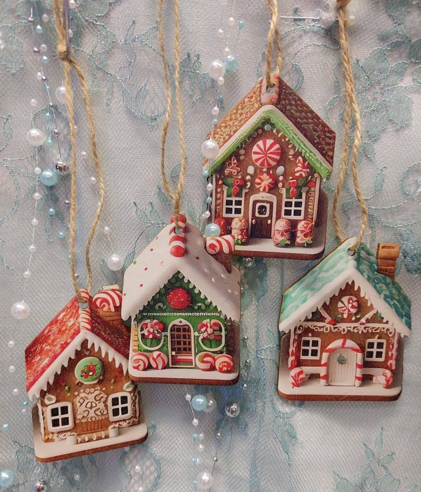 Kauniit koristepiparitalot ilahduttavat missä vain; voi laittaa joulukuuseen, ikkunaan, lahjapaketteihin……