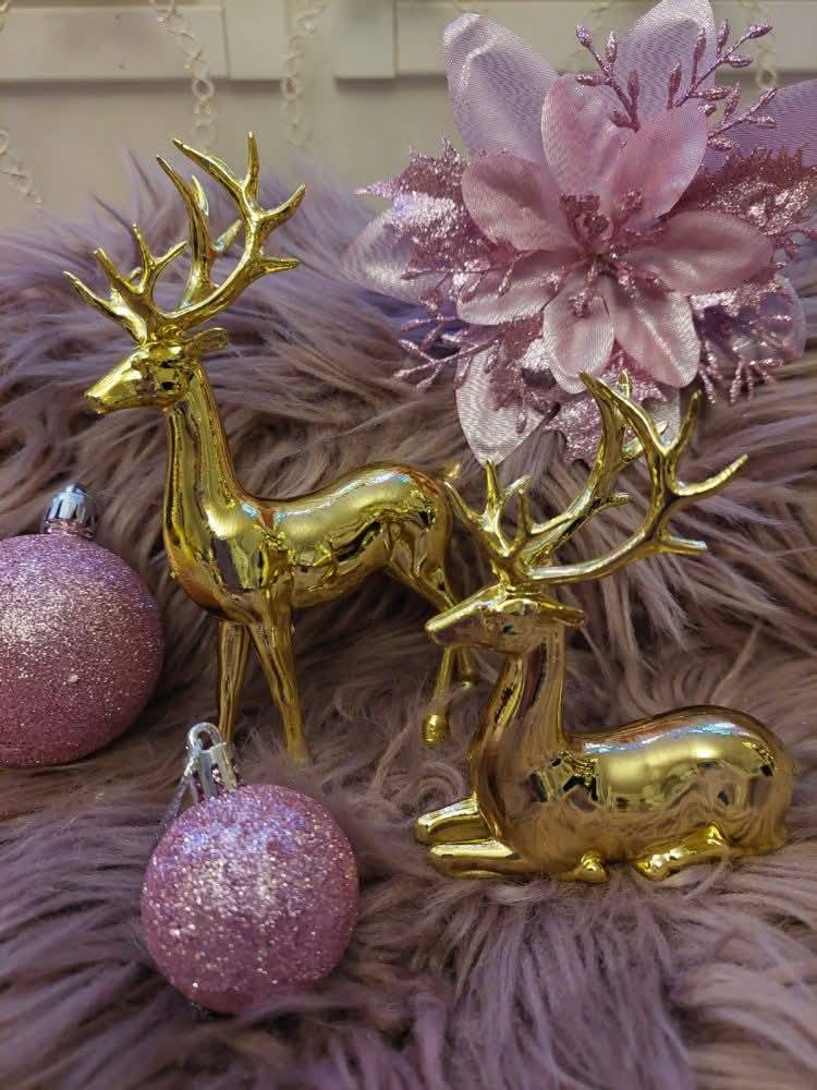 / Kaunis Asetelma: Kultaporot 2 kpl, Joulutähti + vaaleanpunaiset Koristepallot 2 kpl -Tarjouspaketti