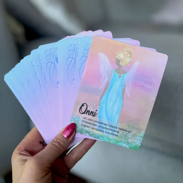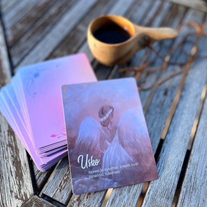 Käytä kortteja aamun aloitukseen, meditaation tueksi tai vaikka ystävän kanssa jaettavaksi. Ne ovat pieniä valonlähteitä, jotka kulkevat mukanasi ja muistuttavat siitä, ettet ole yksin. Enkelikortit sopivat sinulle, joka kaipaat arkeen ripauksen taikaa, tukea ja toivoa.