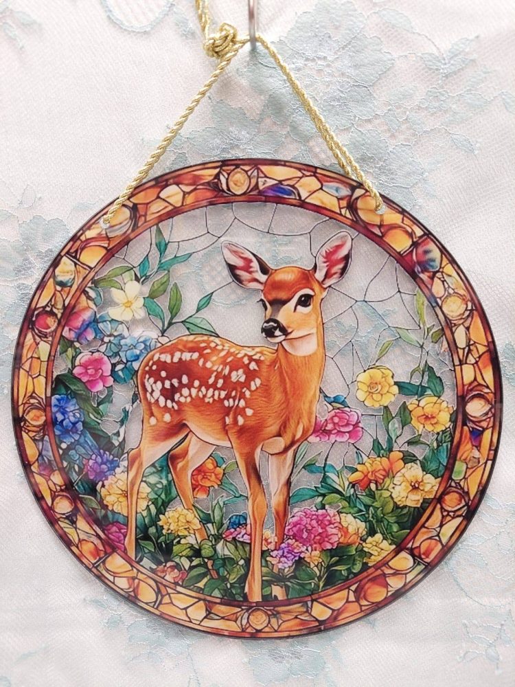 Ikkunakoriste on halkaisijaltaan noin 20 cm.