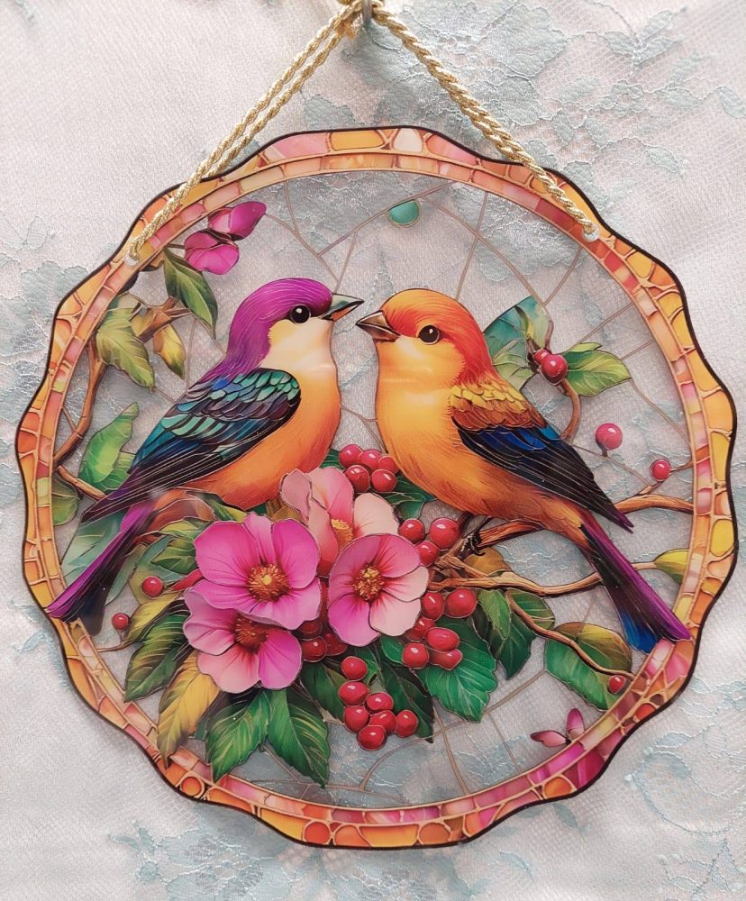 Ikkunakoriste on halkaisijaltaan noin 20 cm.