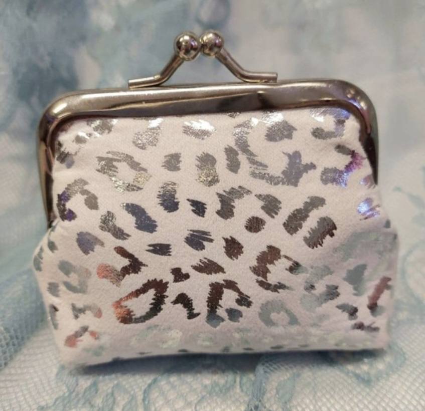 Kaunis leopardikuvioin koristeltu korttikotelo/ kukkaro rahoille, korteille ja tärkeille tavaroille.