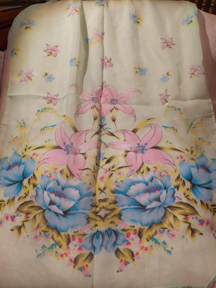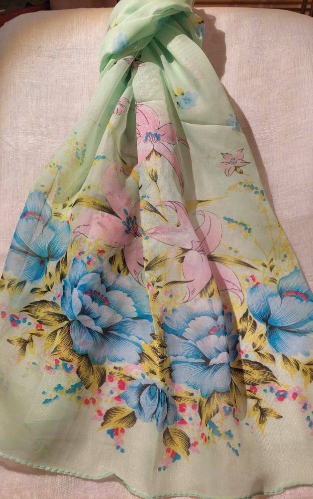 Kaunis mintunvihreä Huivi satumaisilla kukilla