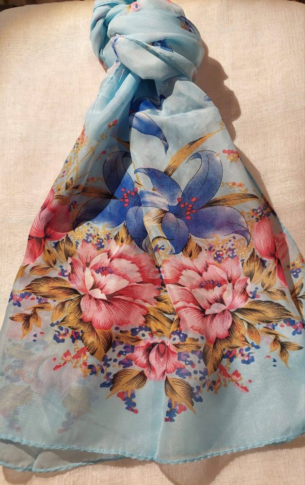 Upea värikäs kuviohuivi antaa viime silauksen pukeutumiselle.