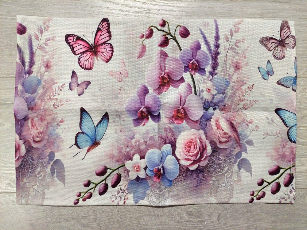 KAUNIS PELLAVAINEN LIINA/ TABLETTI, ORKIDEAT JA PERHOSET