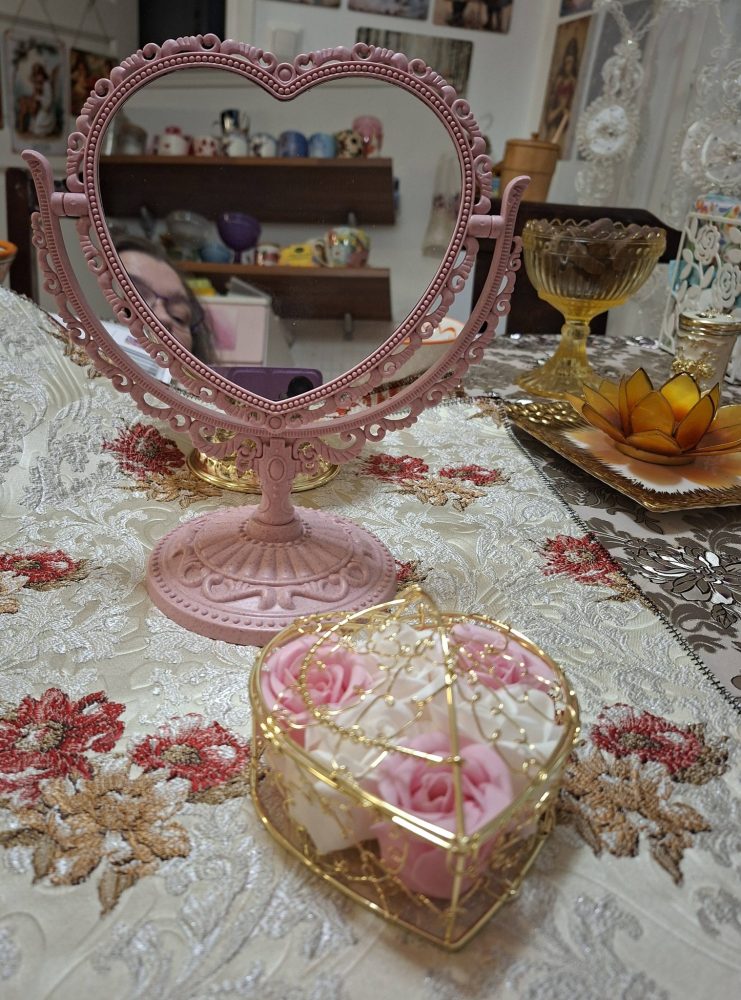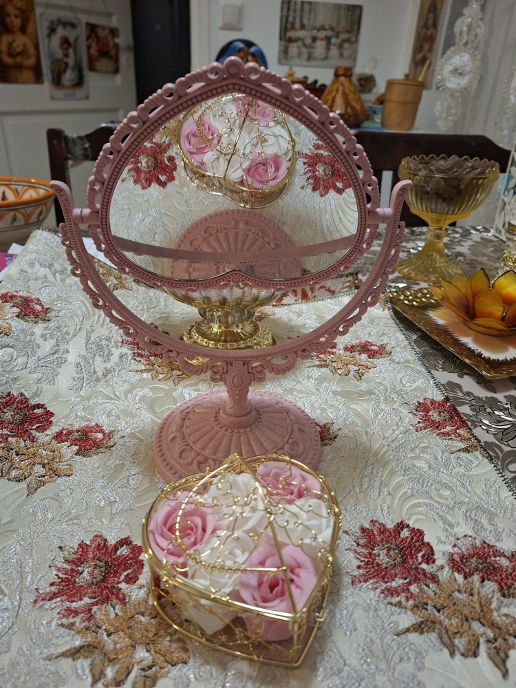 KAUNIS SÄÄDETTÄVÄ VAALEANPUNAINEN PITSIPEILI