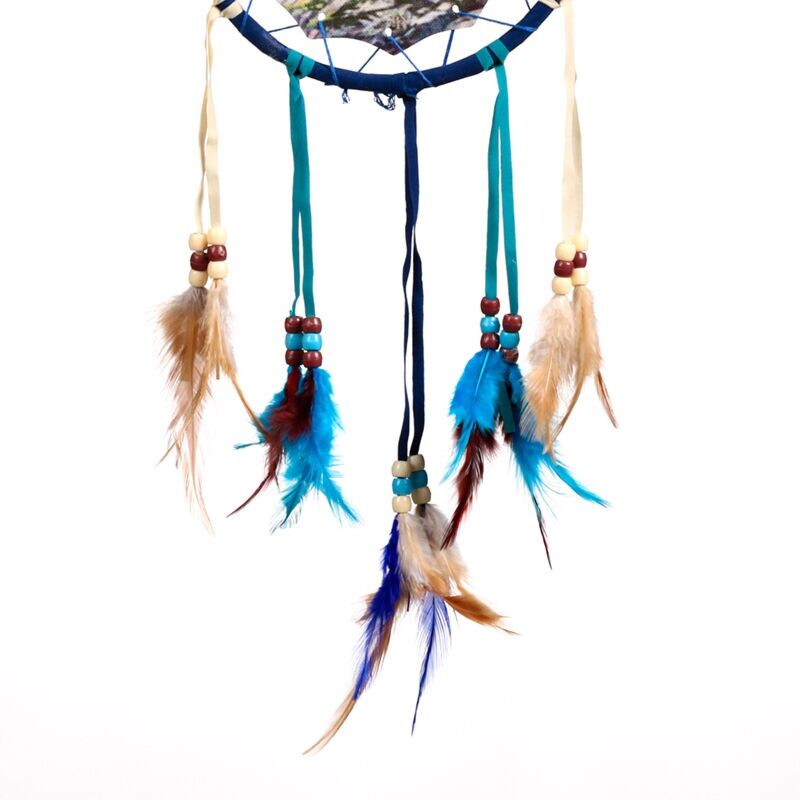 Kehään on kiinnitetty viisi riippuvaa nahkanauhaa, joissa on aidot höyhenet ja helmikoristeet.