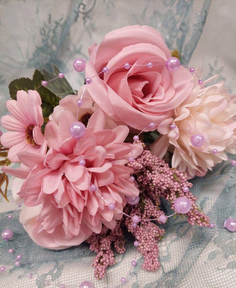 Kaunis Kestokukkakimppu vaaleanpunaisen eri sävyissä.