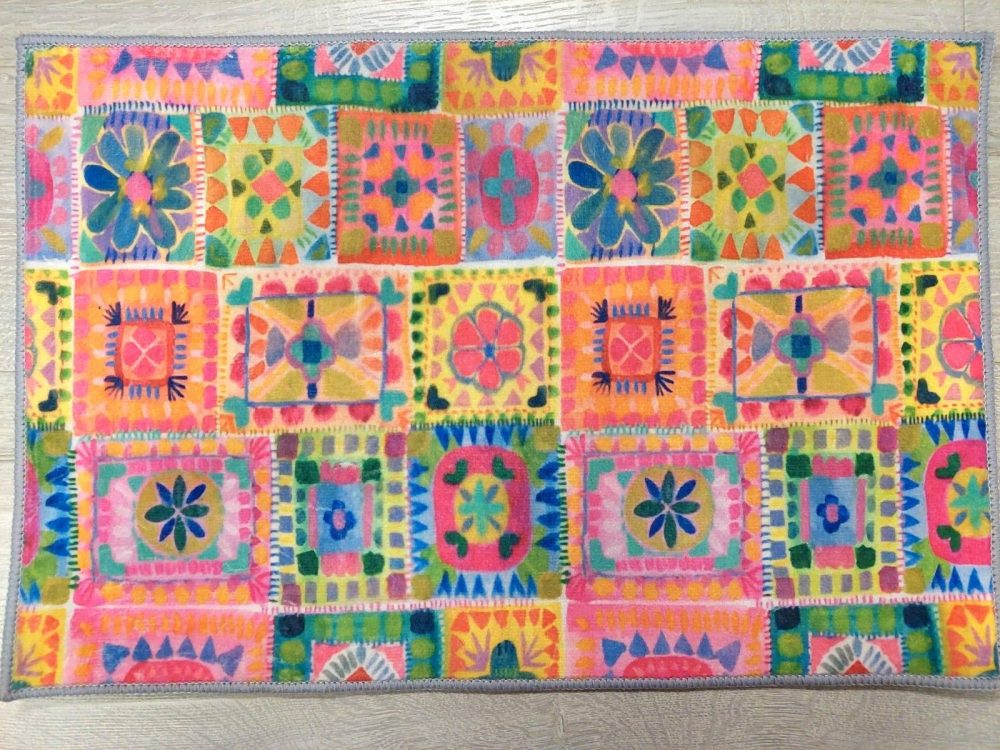 Kaunis, värikäs Pehmo-Kynnysmatto/ vessan matto jarrupohjalla, Isoäidin neliöt