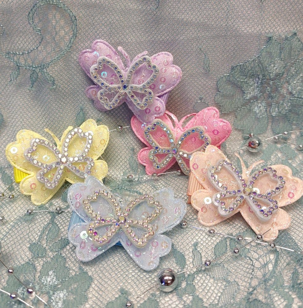 Suloiset hiuskoristeet, kimaltelevat perhoset tuovat hiuksiin ja muuallekin kivan piristyksen.