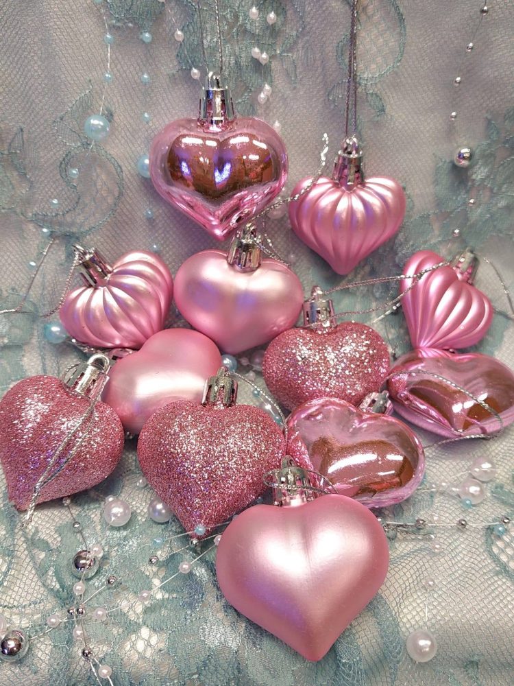 Kauniin vaaleanpunaiset Sydän -joulukuusenkoristeet käyvät mihin tahansa koristeluun, asetelmiin ja joulupaketteihin…tai vaikka Ystävälle joulutervehdyksenä.