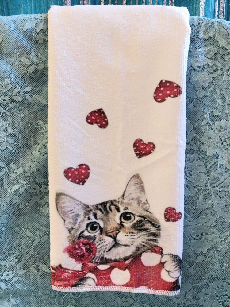 Laadukas, imukykyinen Käsi- ja keittiöpyyhe, Kissa ja sydämet