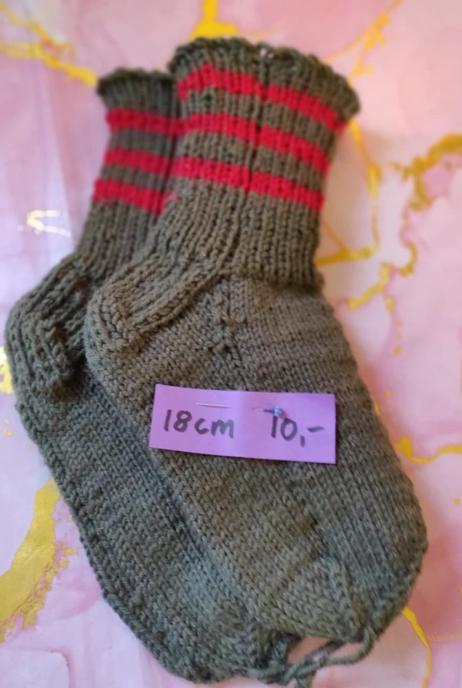 Koululaiselle sopivat reilut villasukat on käsinkudottu Seitsemän veljestä langasta.