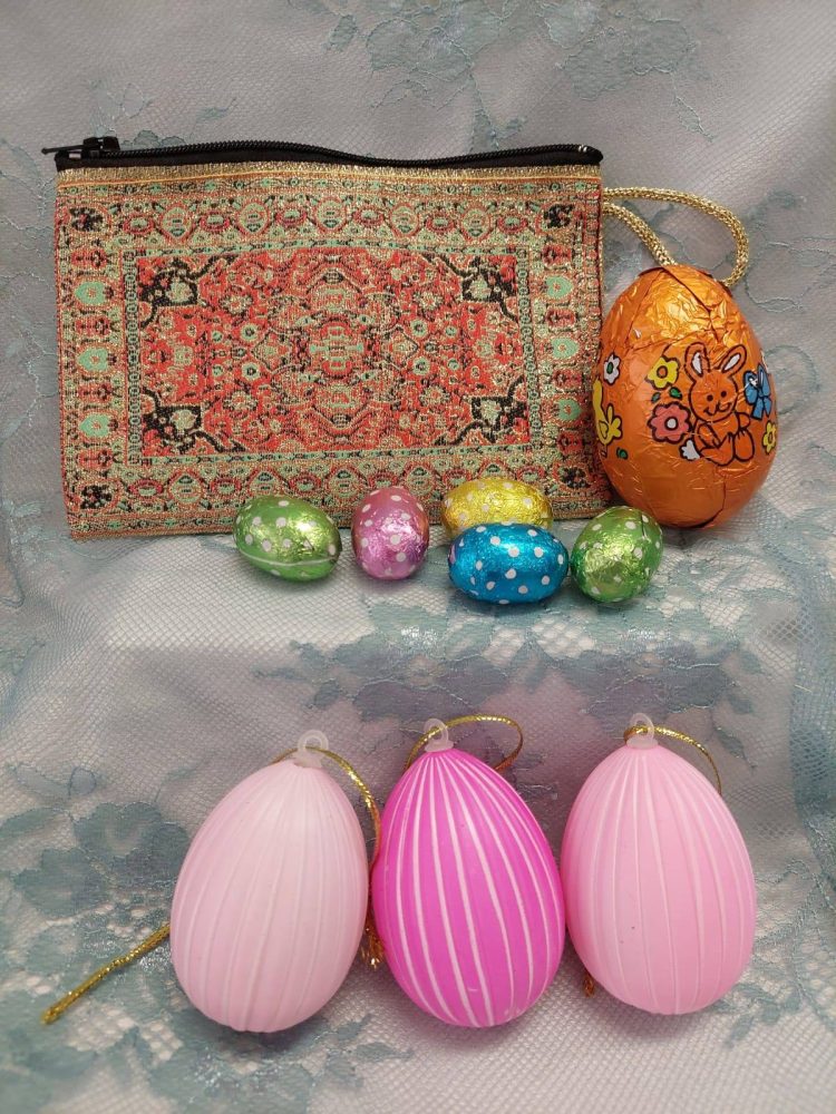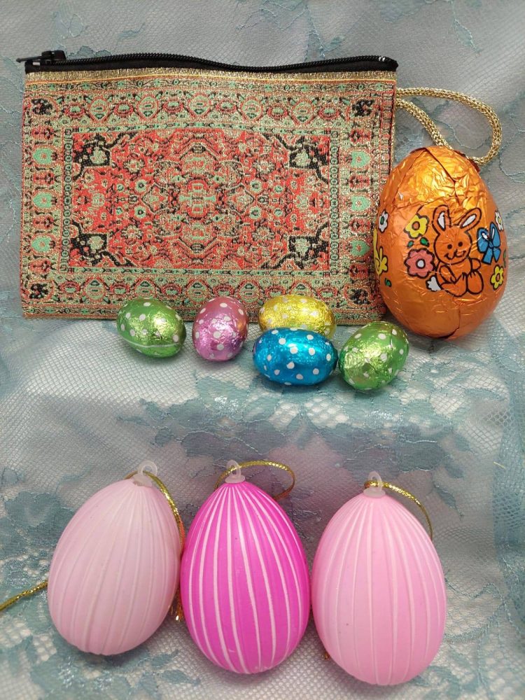 MAROKON KORISTEELLINEN PUSSUKKA + ISO SUKLAAMUNA YLLÄTYKSELLÄ + 5 kpl PIENIÄ SUKLAAMUNIA + 3 kpl VAALEANPUNAISIA KORISTEMUNIA