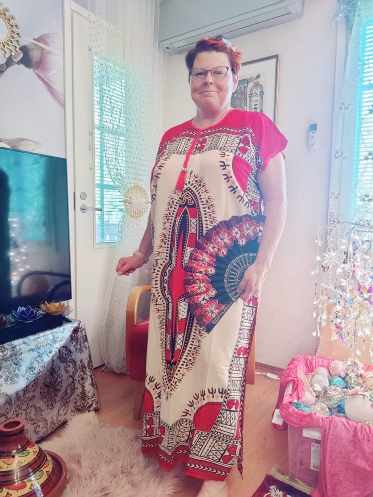 MAROKON KAFTAANI käy arki- ja juhla-asusta. Asiakkaamme ovat käyttäneet kaftaania kotiasuna, juhla-asuna, yömekkona, saunamekkona jne.
