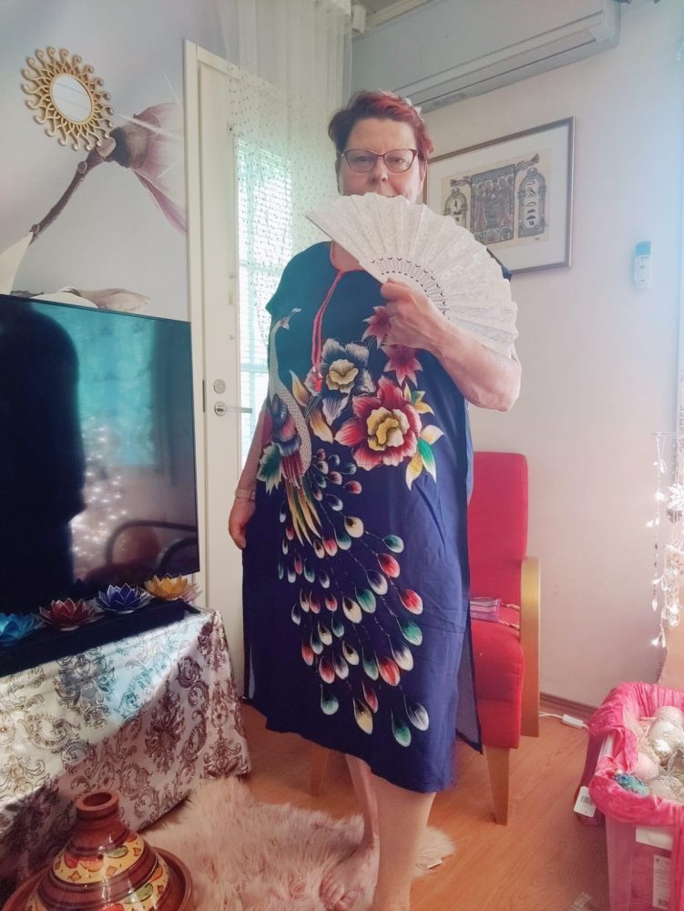 MAROKON KAFTAANI käy arki- ja juhla-asusta. Asiakkaamme ovat käyttäneet kaftaania kotiasuna, juhla-asuna, yömekkona, saunamekkona jne.