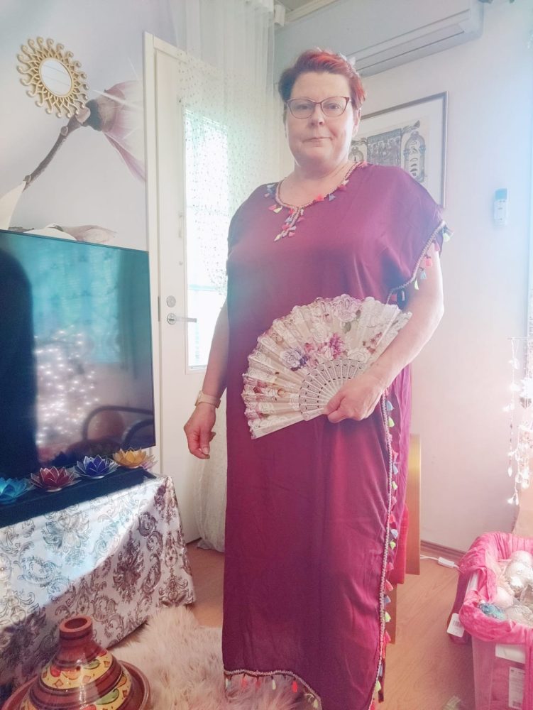 MAROKON KAFTAANI käy arki- ja juhla-asusta. Asiakkaamme ovat käyttäneet kaftaania kotiasuna, juhla-asuna, yömekkona, saunamekkona jne.