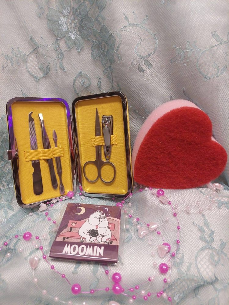 Muumiystävyyttä -Tarjouspaketti: Muumi-manikyyrisetti + Muumi-kynsiviilat 6 kpl + Sydän-pesusieni