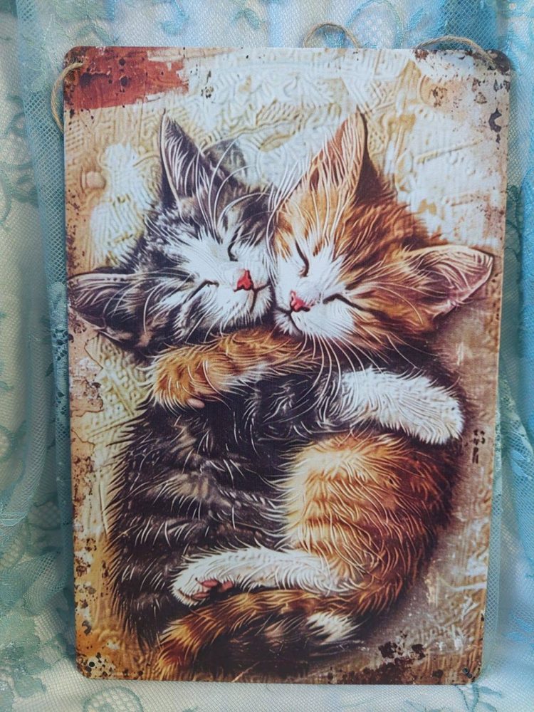 Metallitaulun koko A4, (20 x 30 cm) pyöristetyissä nurkissa on reiät valmiina, voi ripustaa nauhalla/ siimalla tai naulata.