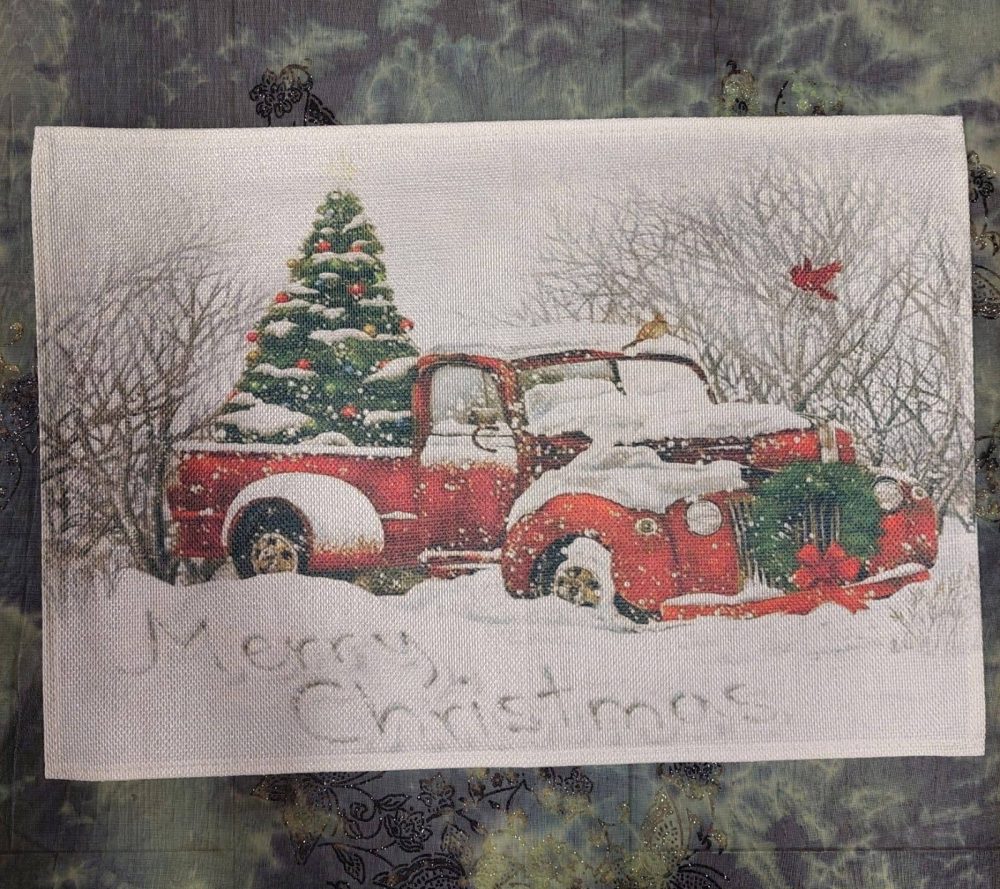 Pellavainen liina/ tabletti, ”Jouluauto”, koko 45 x 30 cm