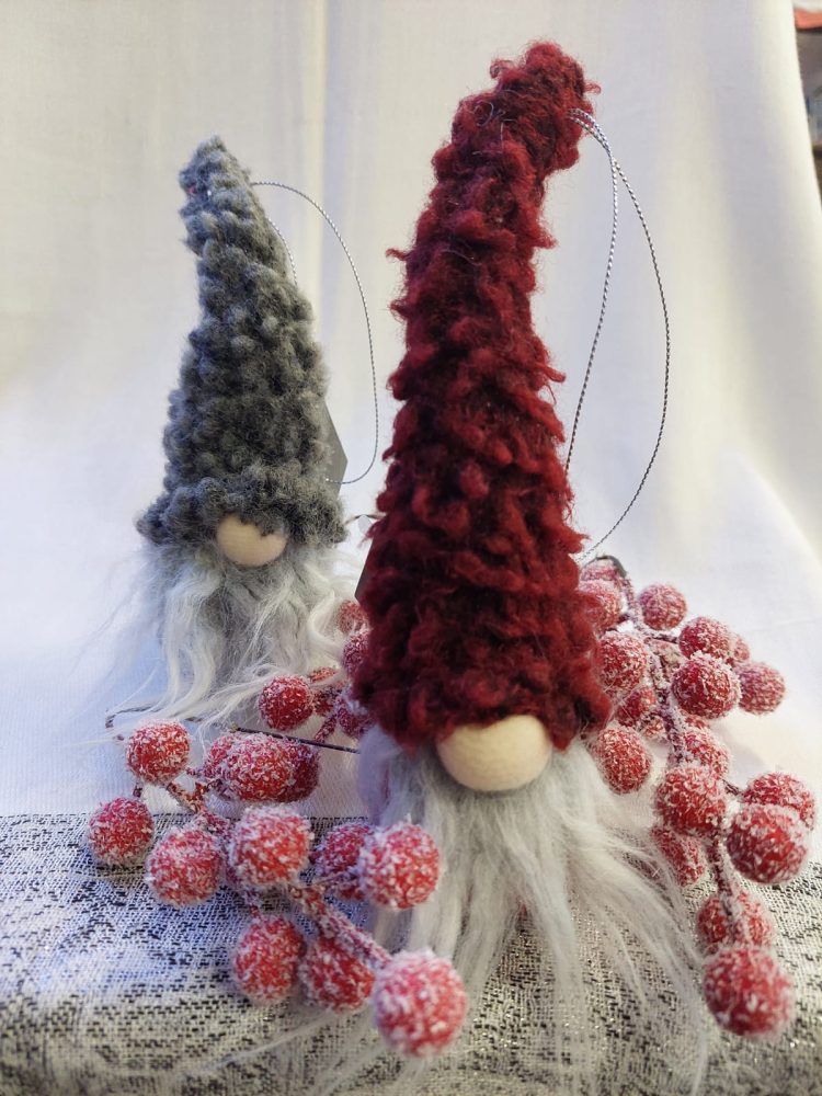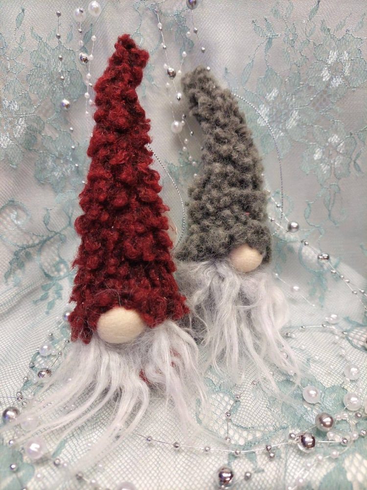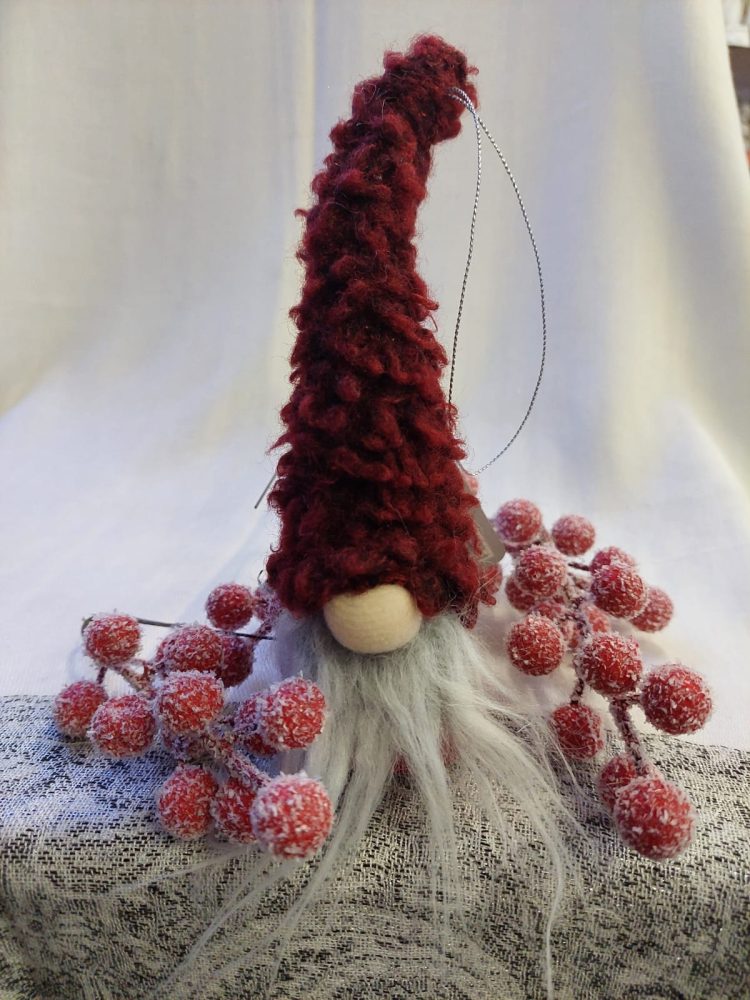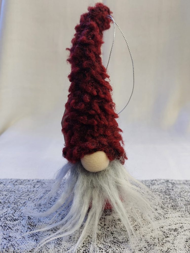 Tämä pieni turkislakkinen tonttu on ihana vaikka kuuseen roikkumaan.
