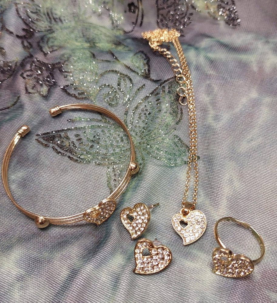 Kaunis Korusetti hopeisella säädettävällä kaulakorulla, rannerenkaalla, sormuksella ja korvakoruilla.