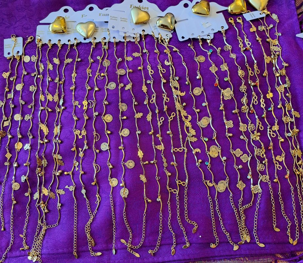 Nilkkakorussa on useita onnenamuletteja ja kiviä.