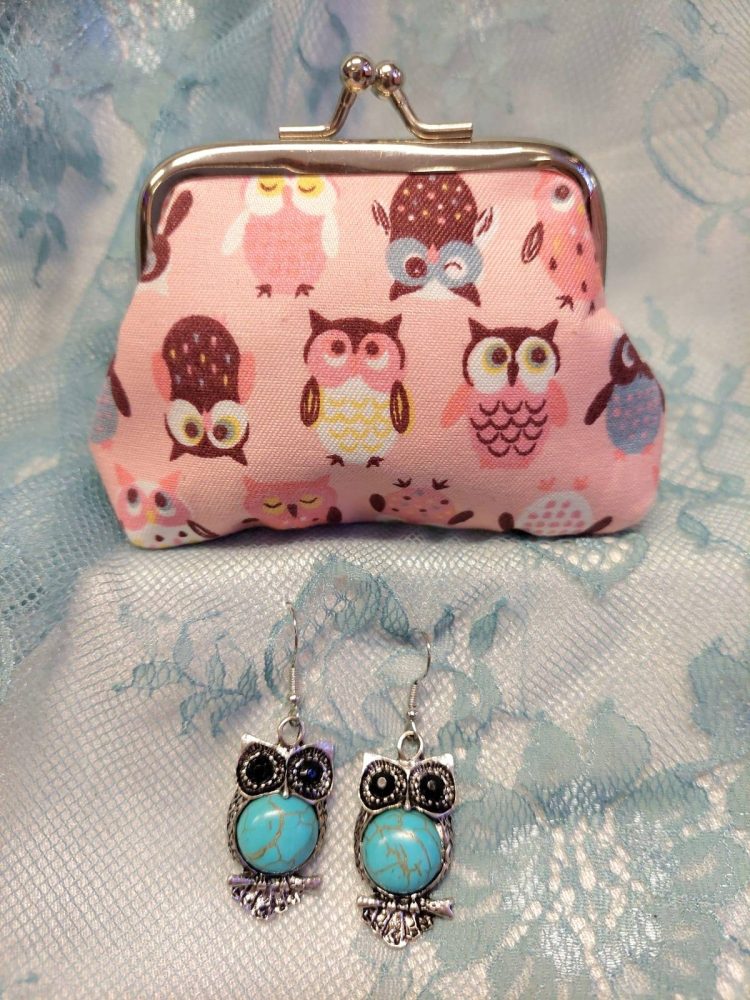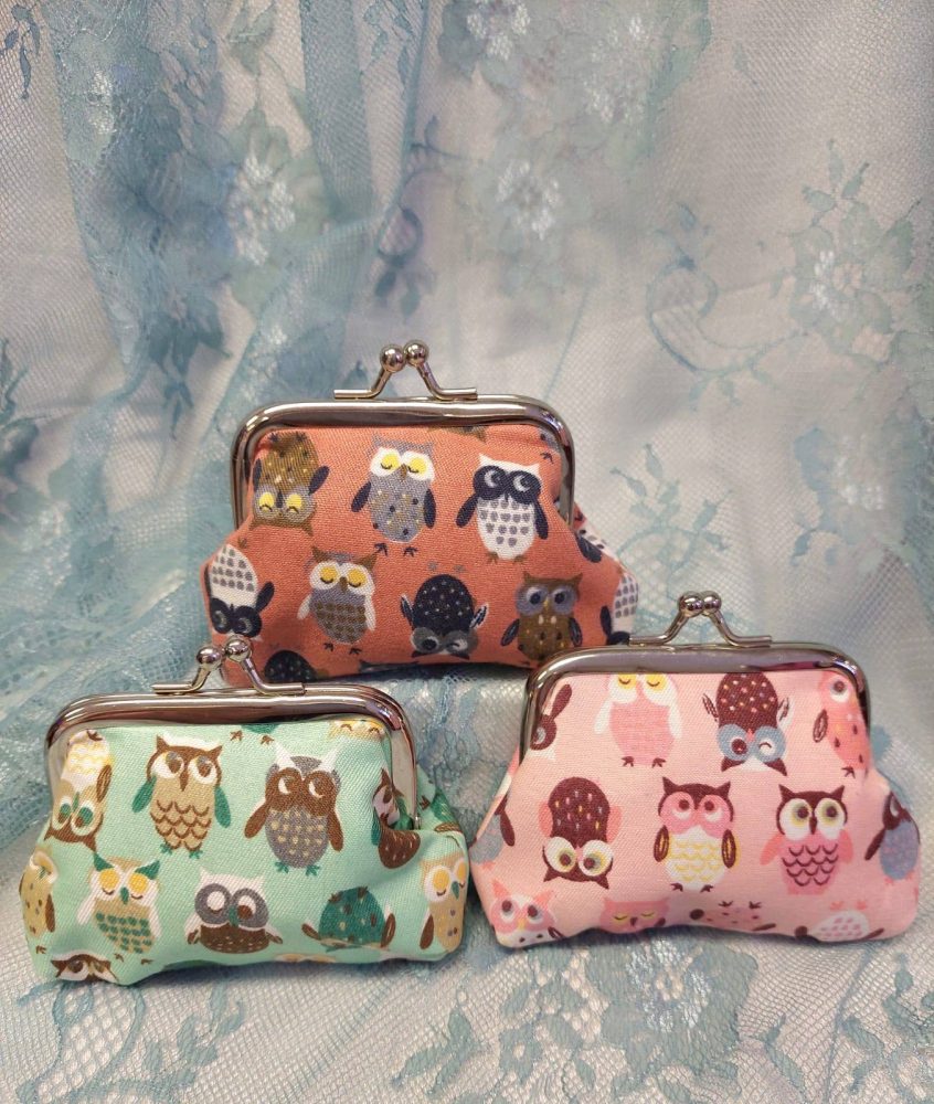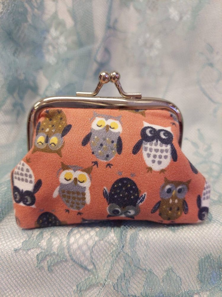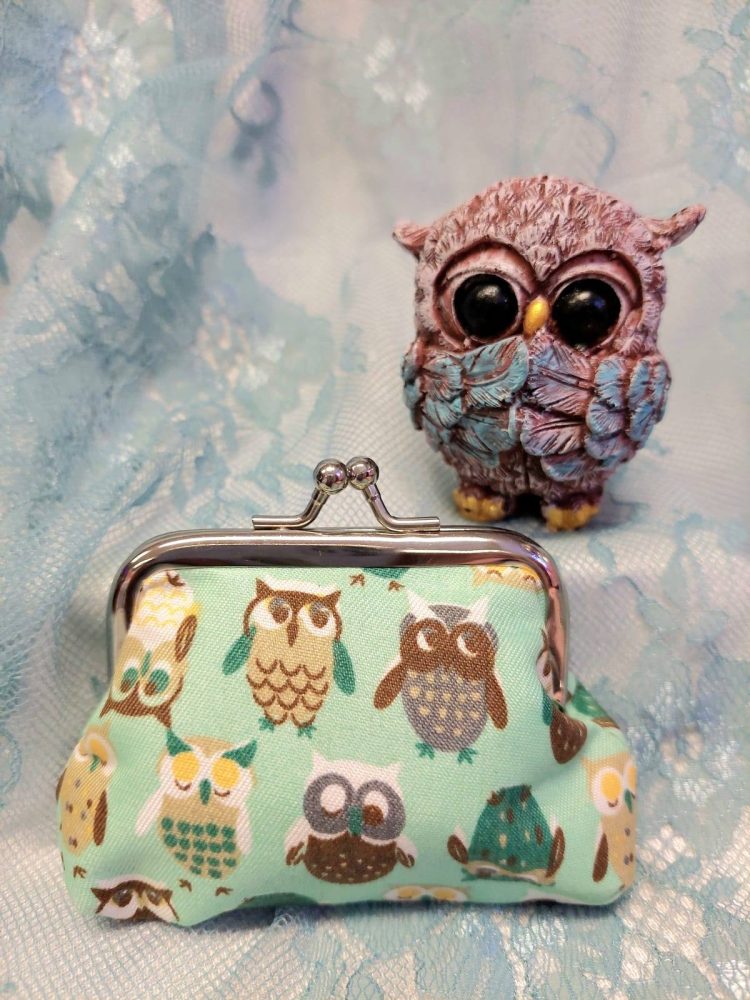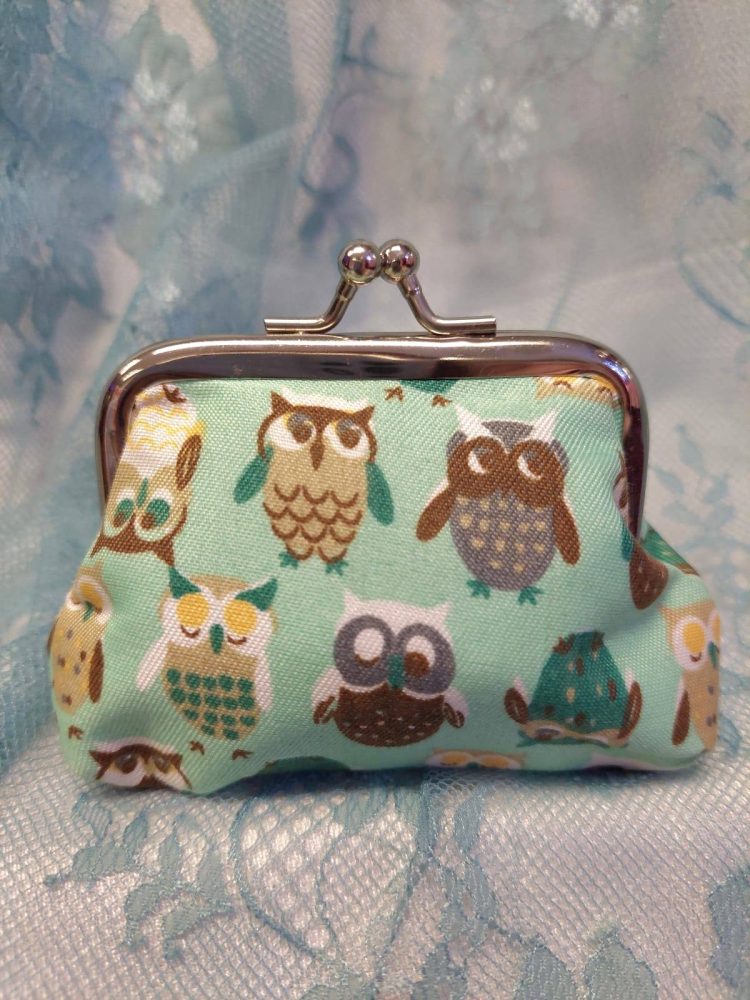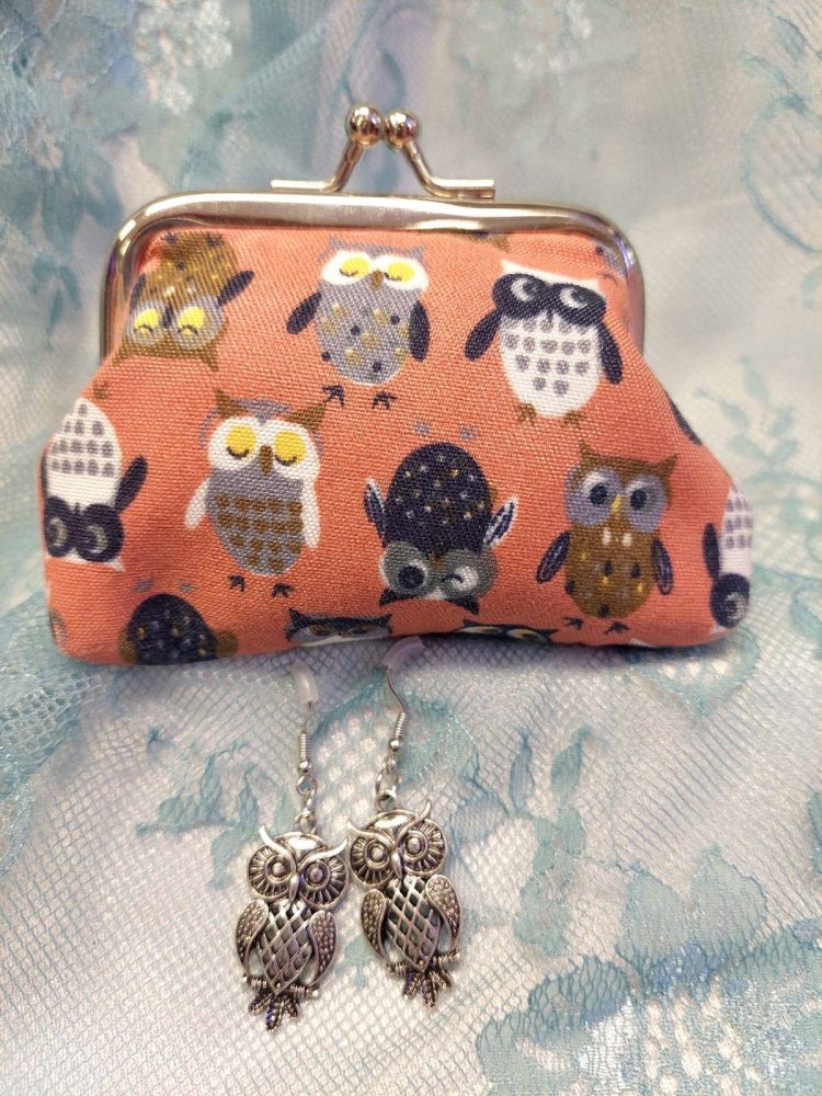 Kaunis pöllöillä koristeltu kolikkokukkaro kaikille tärkeille tavaroille.