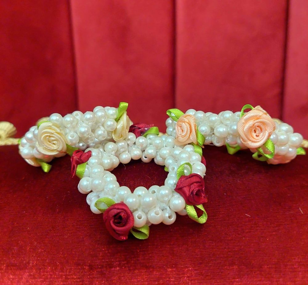 Kaunis helmidonitsi, jossa eri värisiä ruusuja. Tällä donitsilla teet ihania kampauksia tai koristat hiuksiasi.