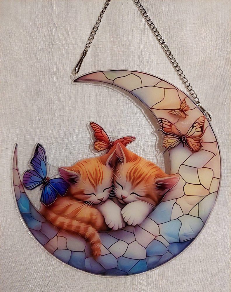 Suloinen Ikkunakoriste, Kissat nukkuvat kuunsirpillä, 20 cm