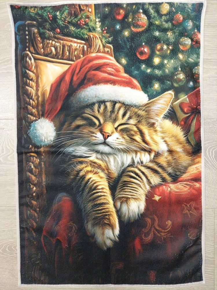 Suloinen, laadukas Joulupyyhe, Onnellisen kissan Joulu-uni