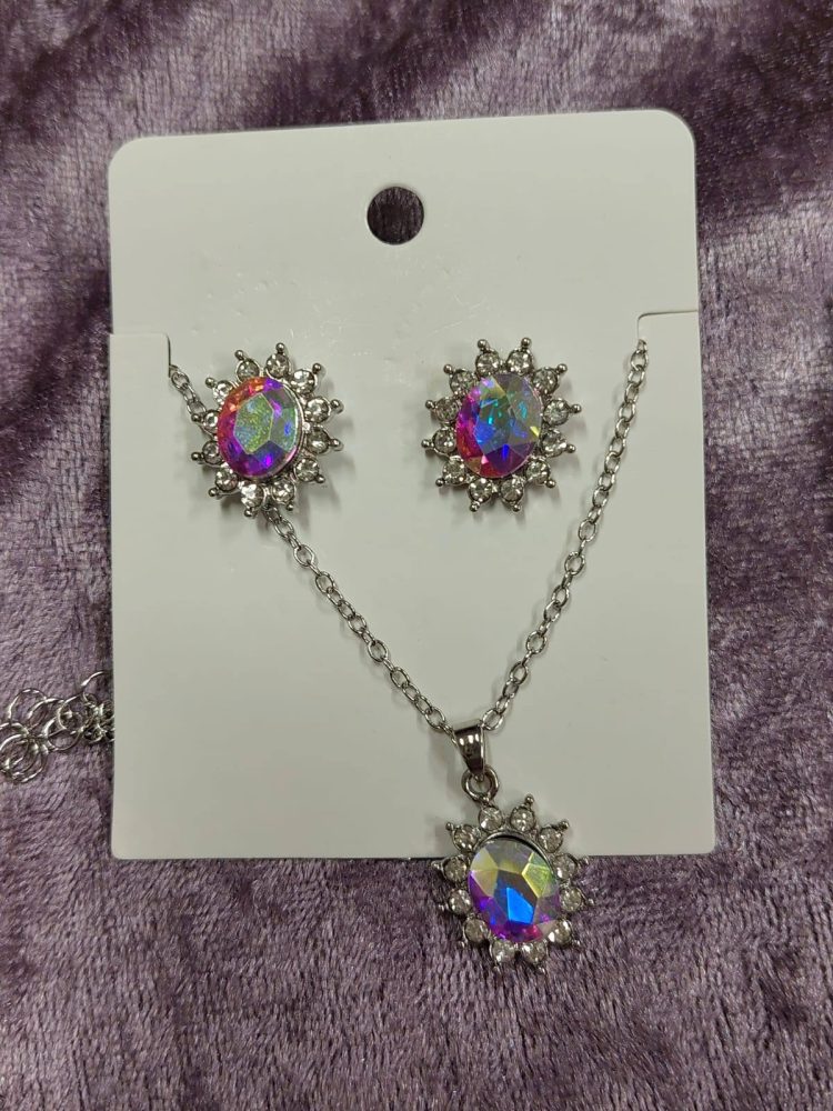 Upea Korusetti: Kaulakoru ja Korvakorut, monivärinen kristalli Hopeatähdessä