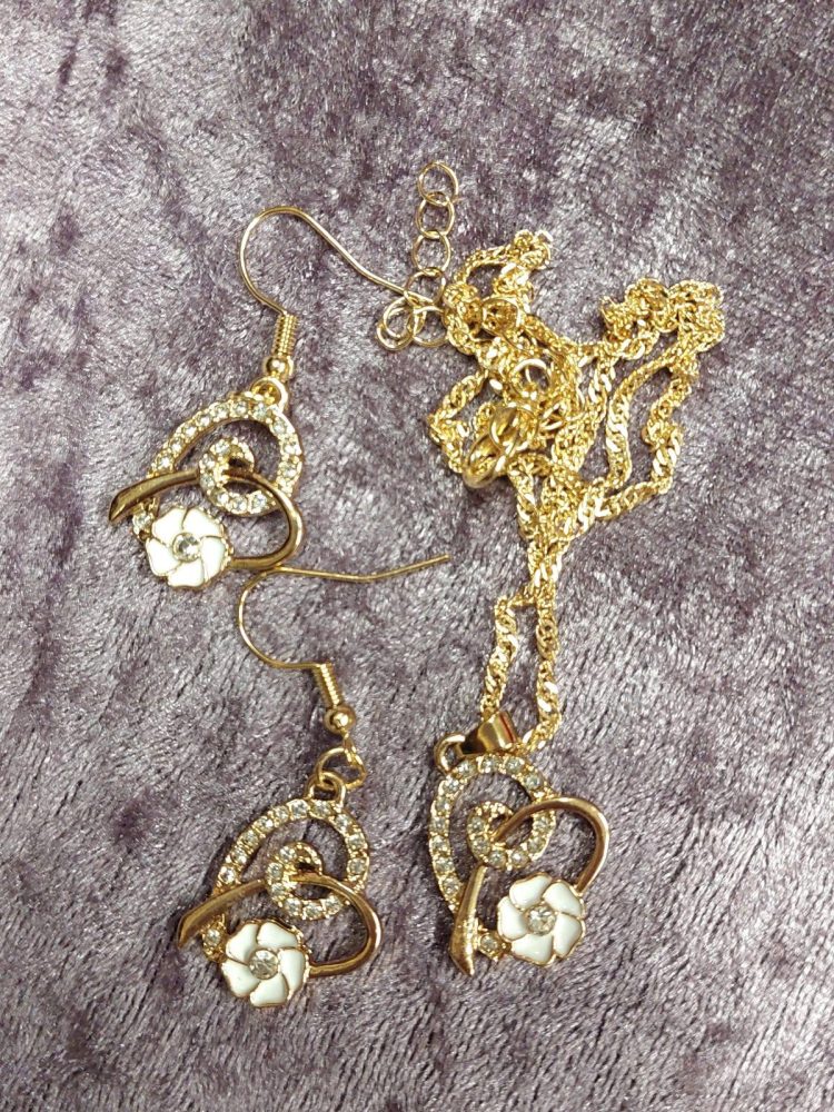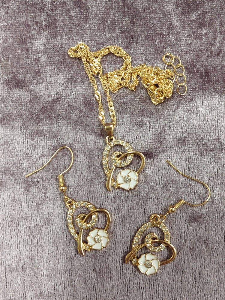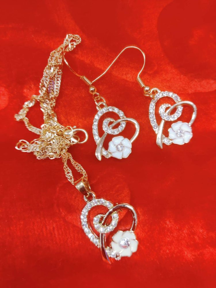 Upea Korusetti: Kaulakoru ja Korvakorut taiteellisella Sydämellä ja Kukalla