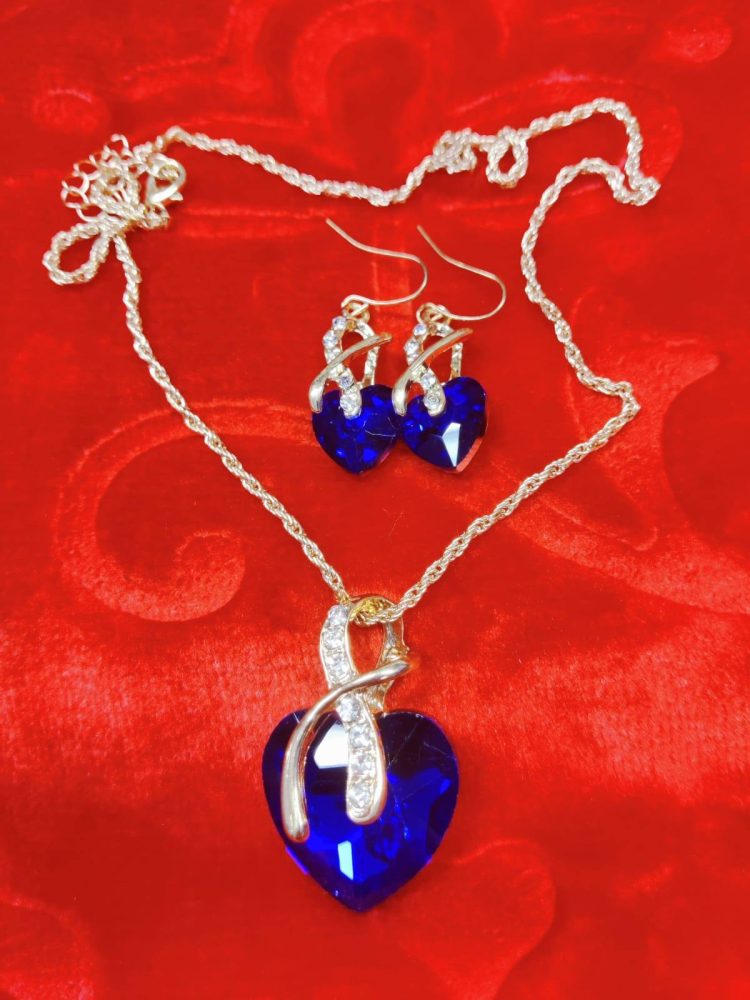 Upea Korusetti säädettävällä Kaulakorulla, jossa iso vihreä Sydän ja kristallit + Korvakorut